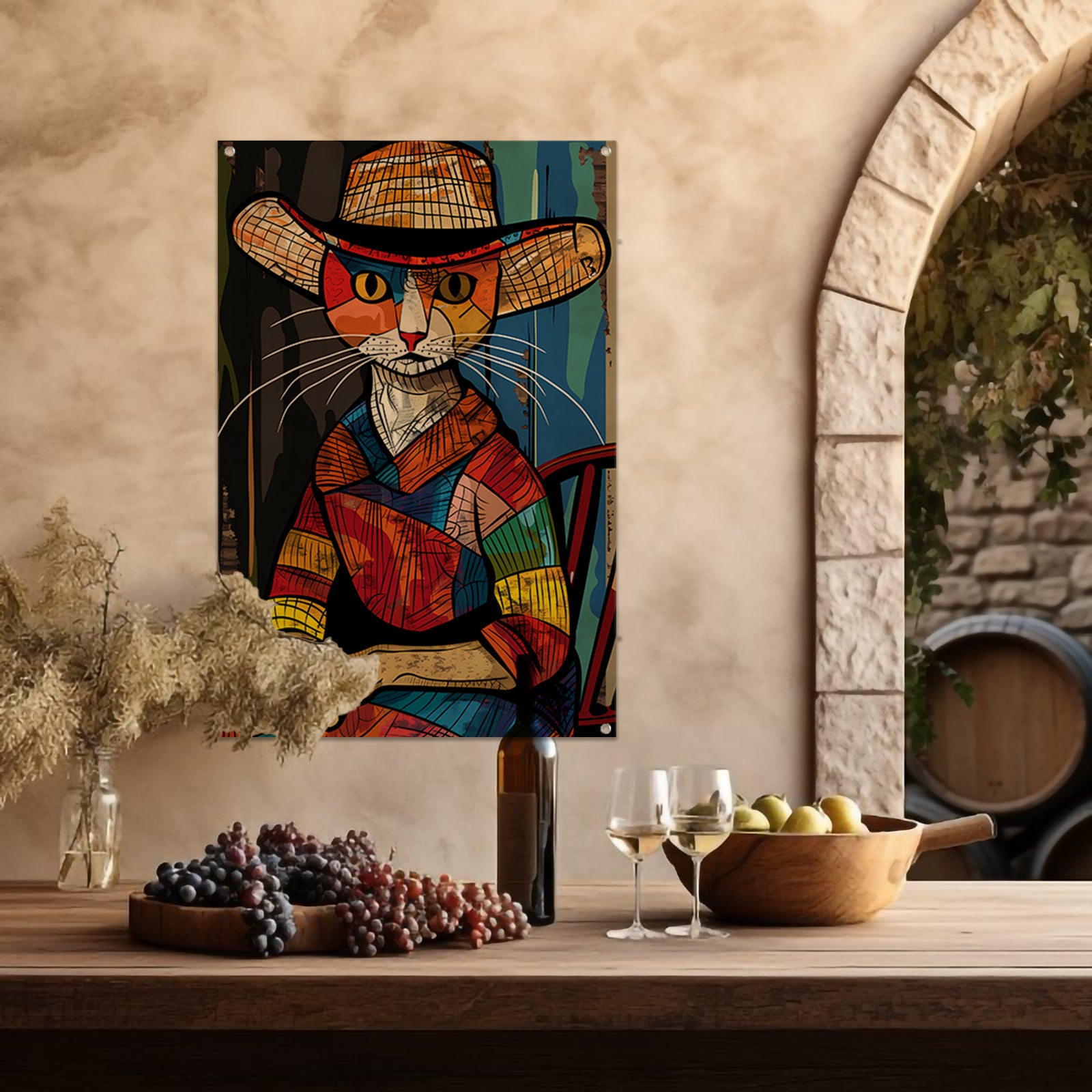 Kubistische Kat in Levendige Kleuren tuinposter