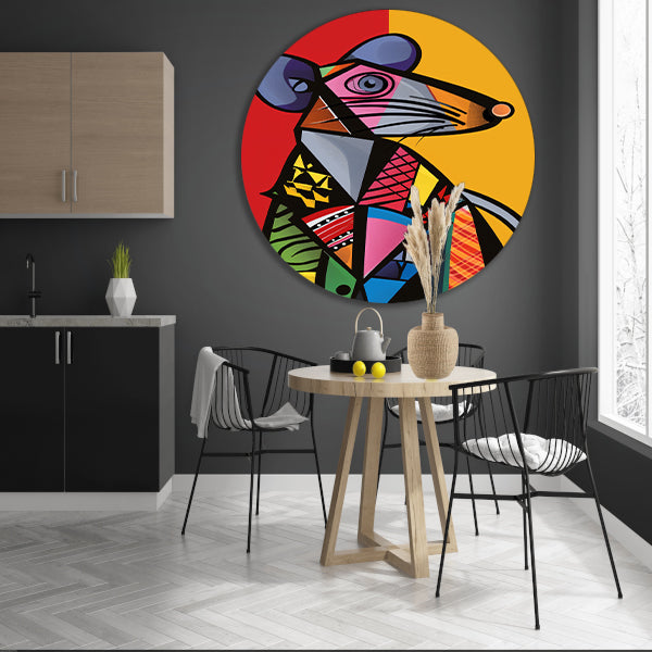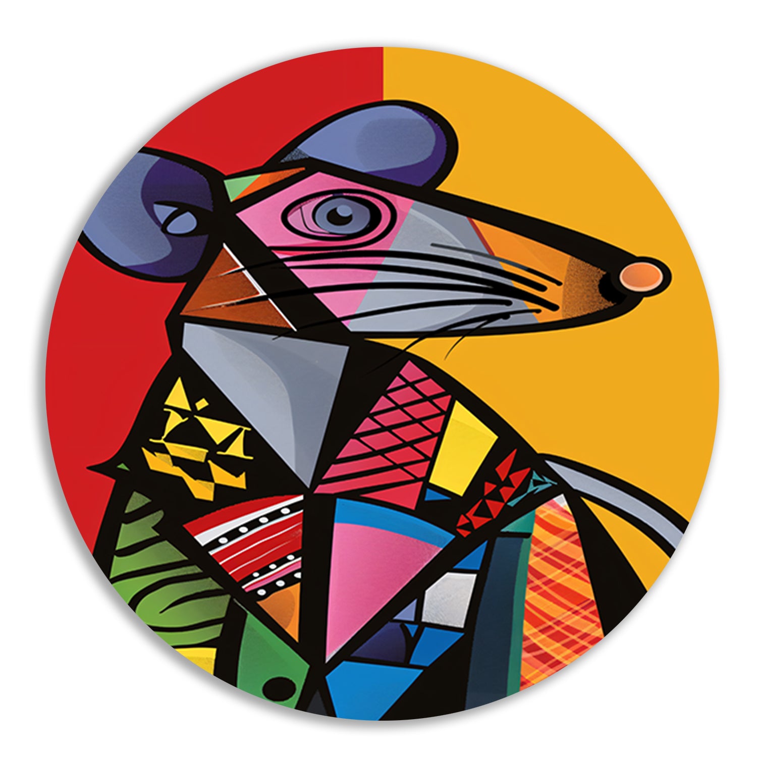 Kubistische Muis in Levendige Kleuren aluminium muurcirkel