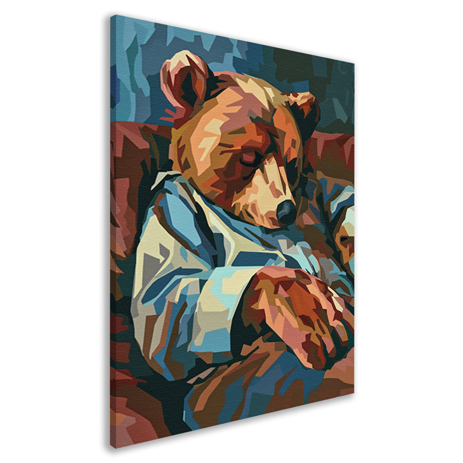 Kubistische Slapende Beer in Blauw Pak canvas