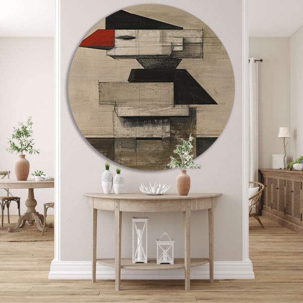 Kubistische Vogel in Zwart-Wit en Rood forex muurcirkel