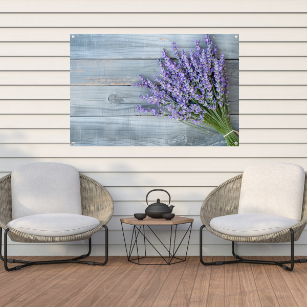 Het stijlvolle ontwerp is niet alleen visueel aantrekkelijk, maar ook veelzijdig; het past bij verschillende interieurstijlen, van landelijk en shabby chic tot modern en minimalistisch. Geef uw ruimte een persoonlijke touch en laat de betovering van de lavendel zijn werk doen. Voor een uniek effect kunt u deze tuinposter combineren met andere decoratieve elementen, zoals planten, kaarsen of accessoires in zachte, natuurlijke tinten.