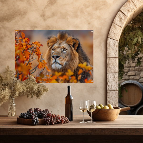 Leeuw in Herfstbladeren - Natuurs Koningschap tuinposter