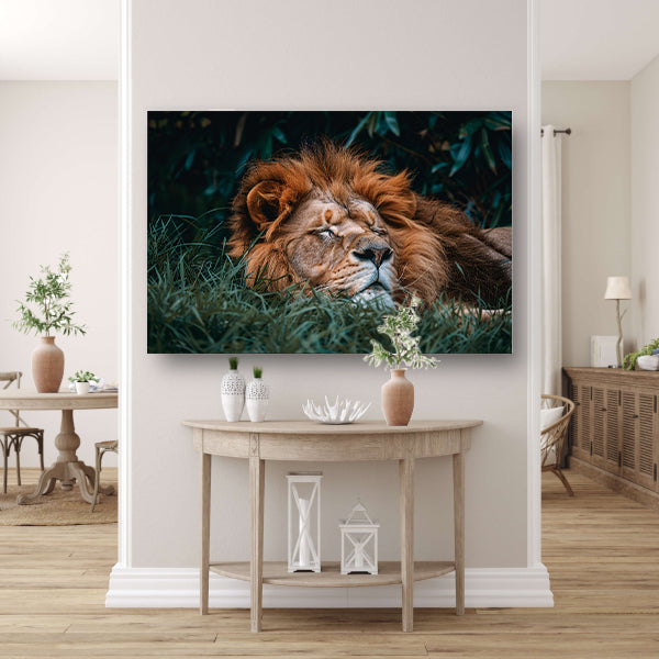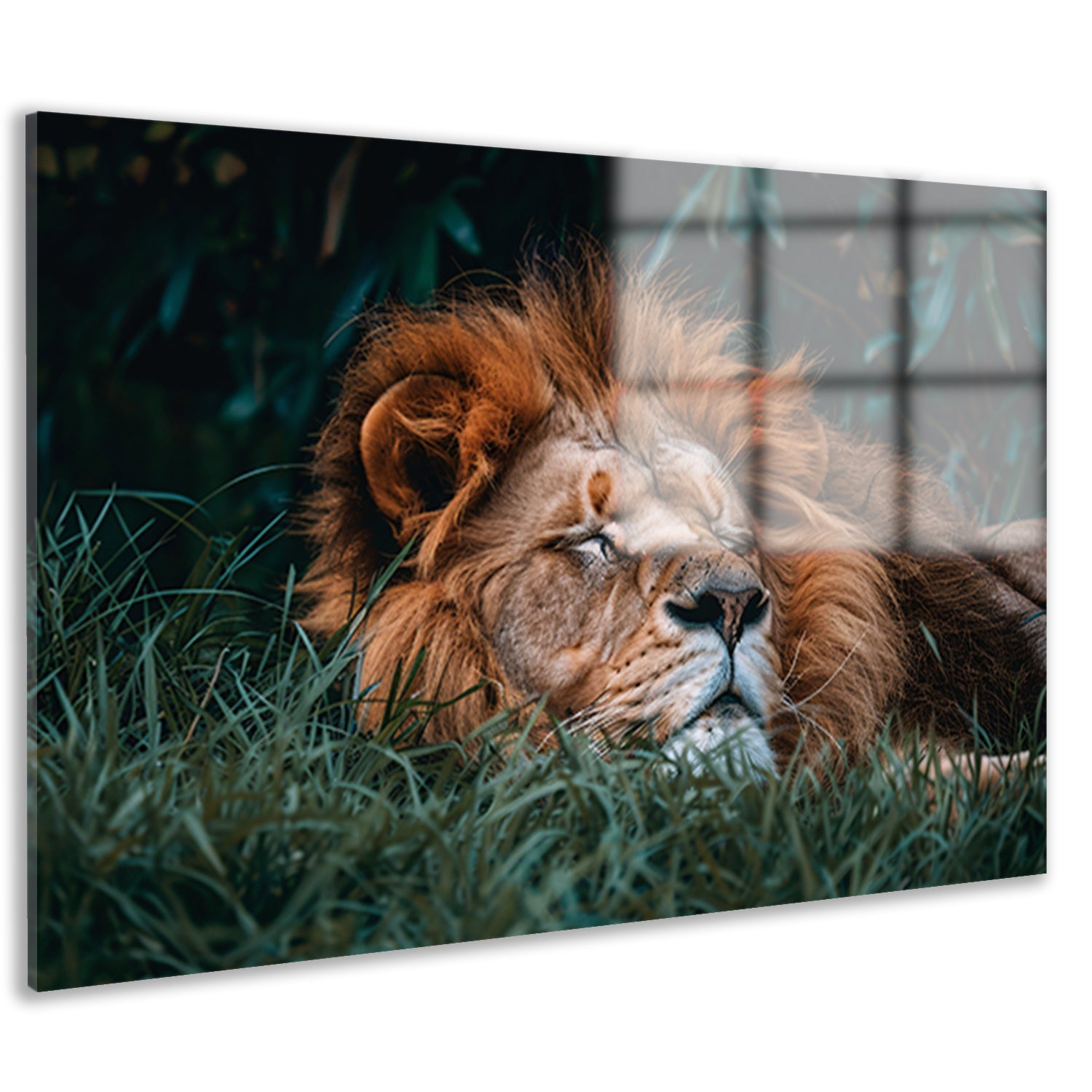 Leeuw Slaapt Kalm in Groen Gras acrylglas