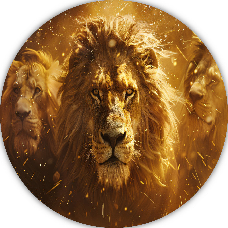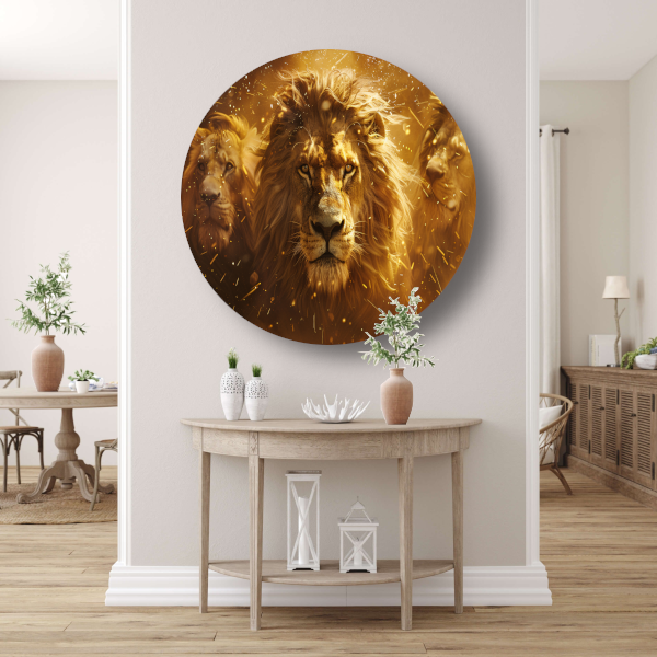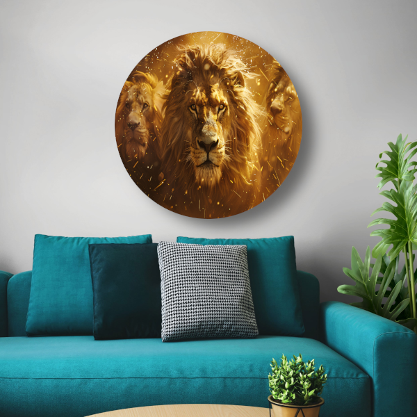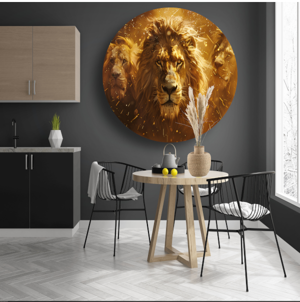 Breng de prachtige natuur van de savanne in huis met deze schitterende muurcirkel en geniet elke dag van de serene schoonheid van een zonsondergang met leeuwen.