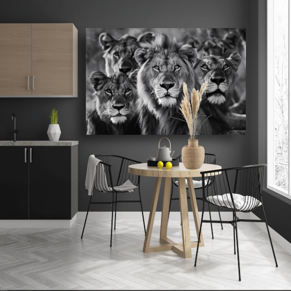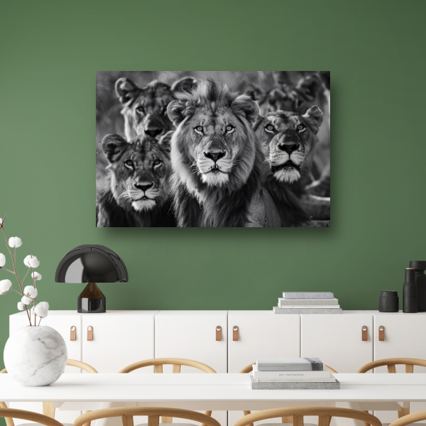 Breng een vleugje wilde schoonheid en elegantie in huis met deze prachtige acrylglasprint van een leeuwenfamilie in de savanne. Met zijn levendige details en hoogwaardige afwerking is dit kunstwerk een echte eyecatcher in elke kamer.