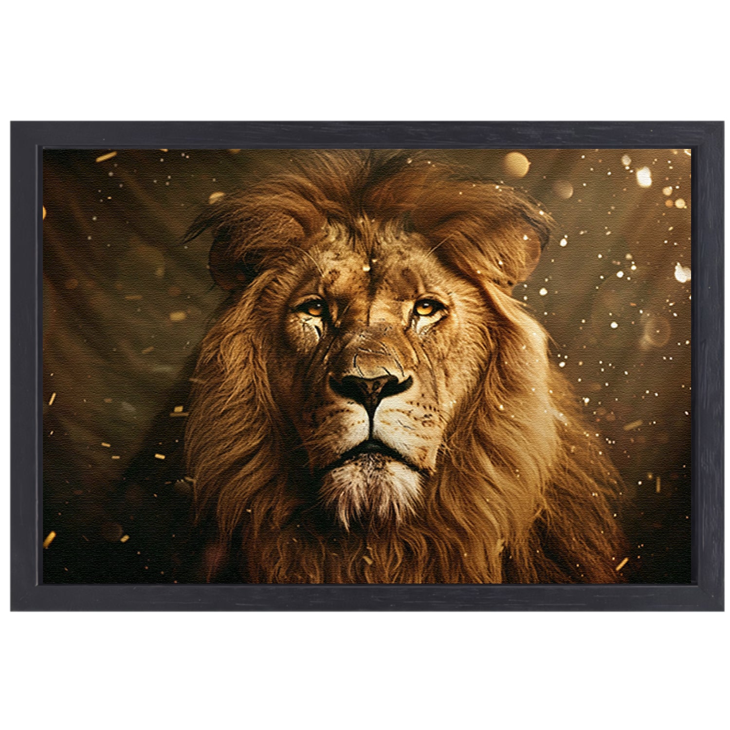 Leeuwenkop in close-up canvas met baklijst