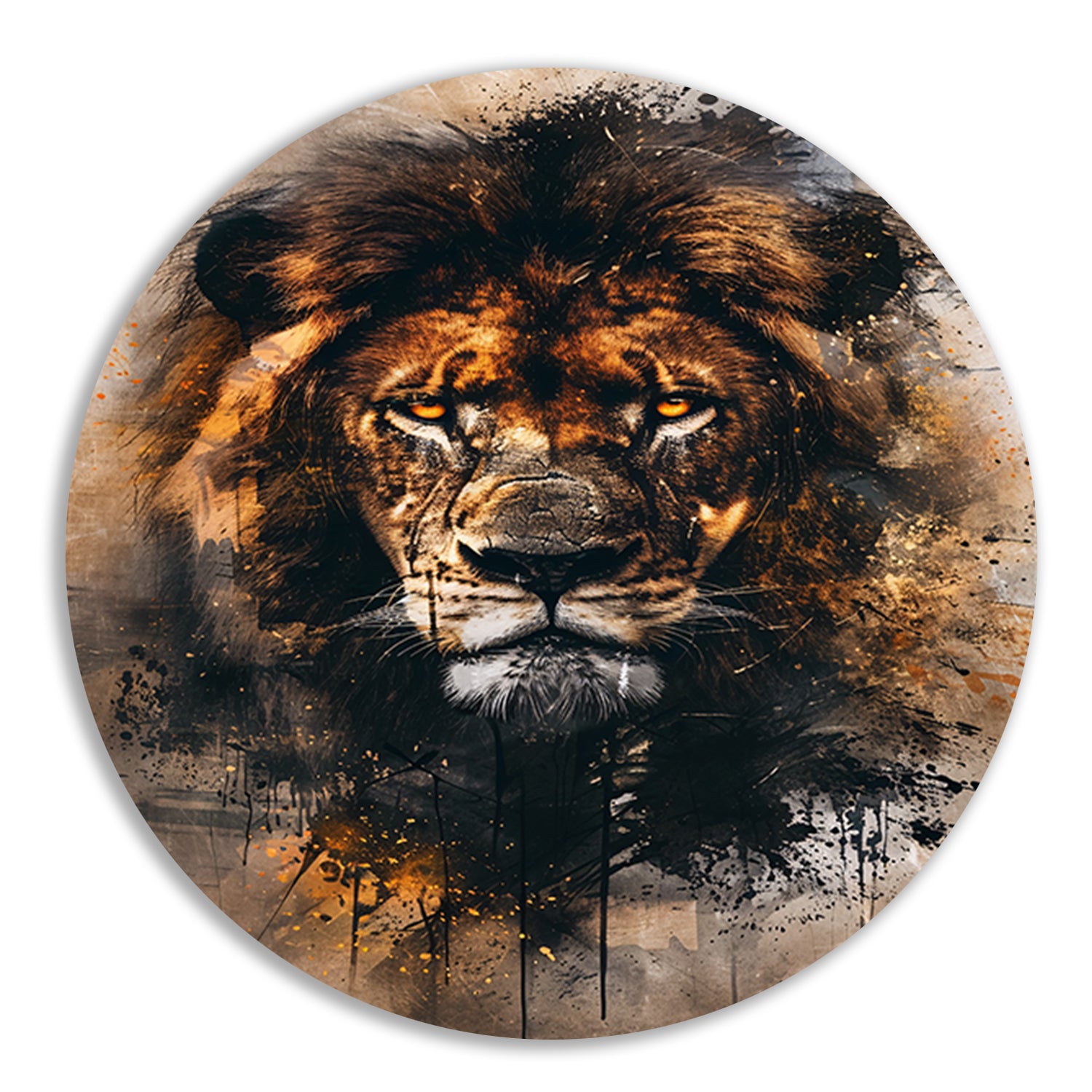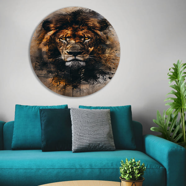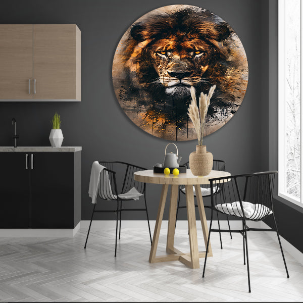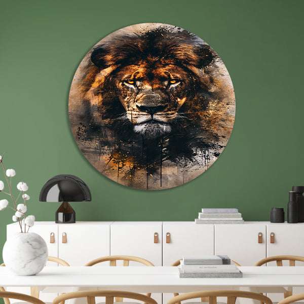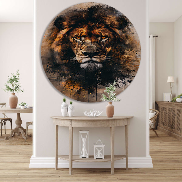 Leeuwenkop in dynamische graffiti-stijl aluminium muurcirkel