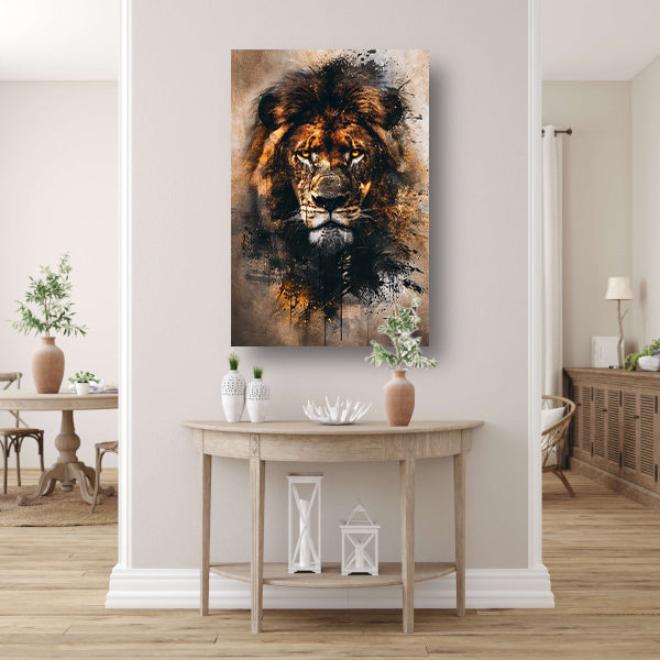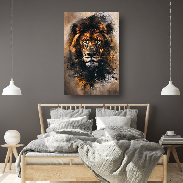 Leeuwenkop in dynamische graffiti-stijl canvas met baklijst
