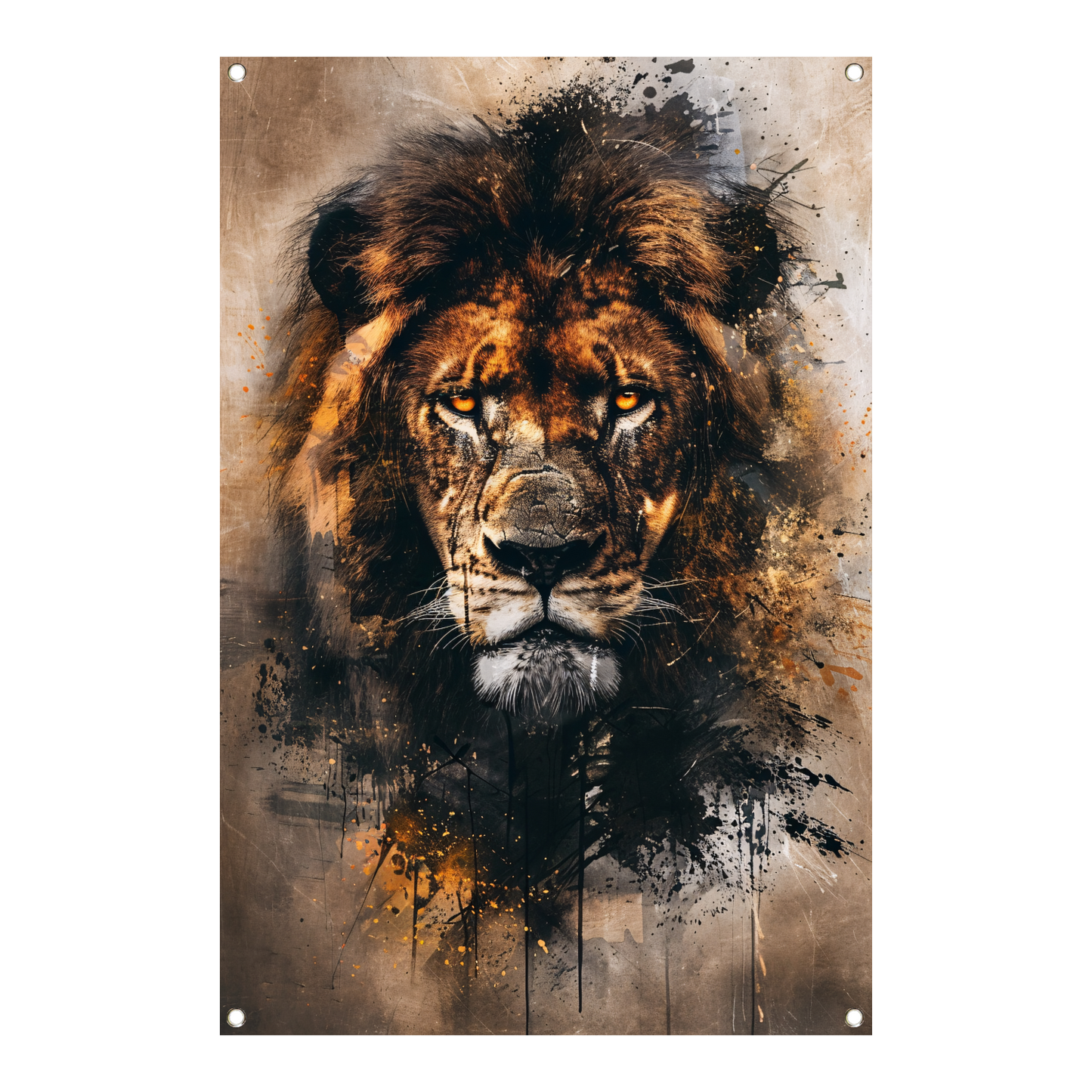 Leeuwenkop in dynamische graffiti-stijl tuinposter
