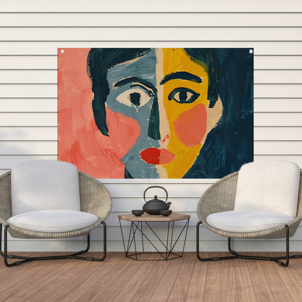 Levendig kubistisch portret met abstracte stijl tuinposter
