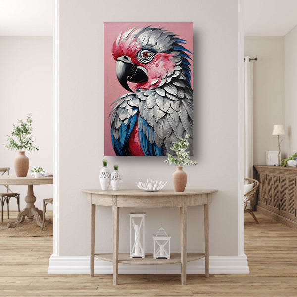 Levendig Papegaaienportret in Roze en Blauw Acrylglas