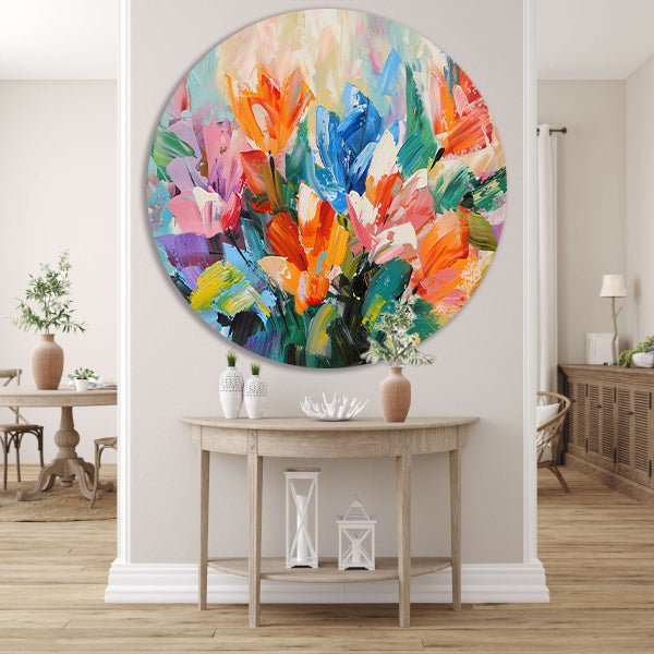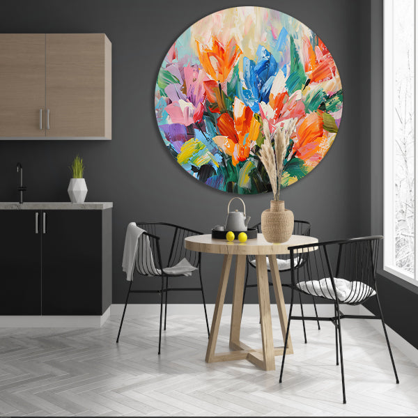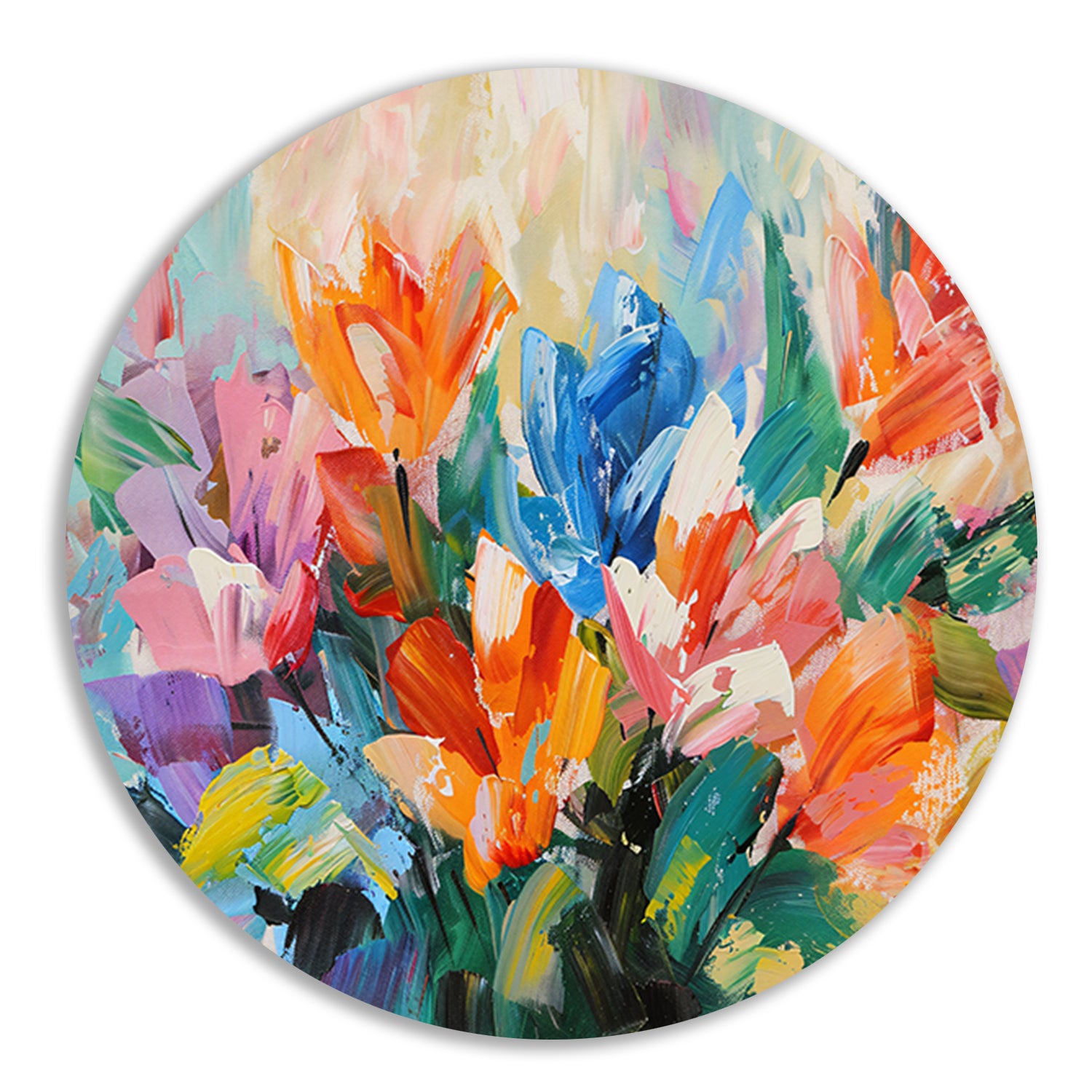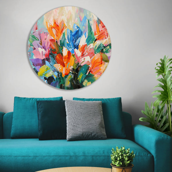 Levendige Abstracte Impressionistische Bloemenschilderij aluminium muurcirkel
