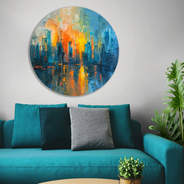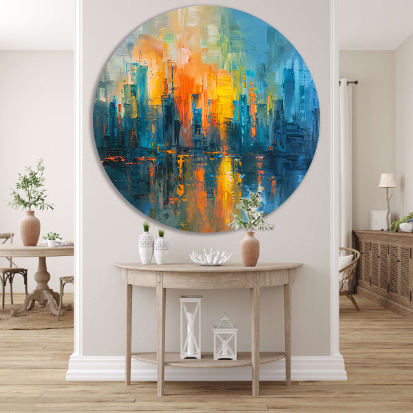 Levendige abstracte weergave van een grootstedelijk landschap forex muurcirkel