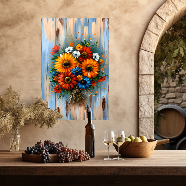 Onze tuinposters zijn UV- en waterbestendig, waardoor ze bestand zijn tegen zon en regen en hun kleuren langdurig mooi blijven. Alle tuinposters van De Muurdecoratie zijn voorzien van ringen in de hoeken, zodat je ze eenvoudig kunt ophangen. Let op: onze tuinposters worden niet met ophangsysteem geleverd.