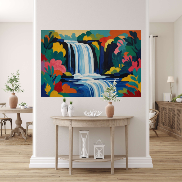 Levendige Expressionistische Waterval met Bloemen acrylglas