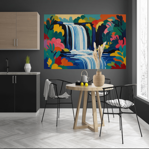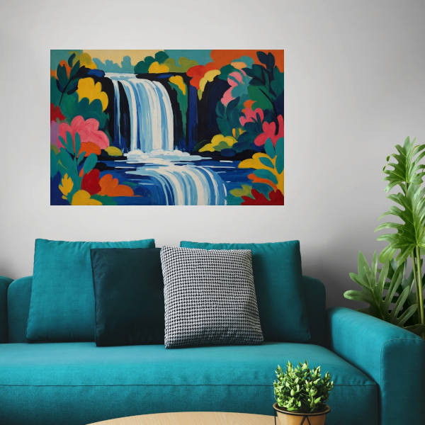 Levendige Expressionistische Waterval met Bloemen canvas met baklijst