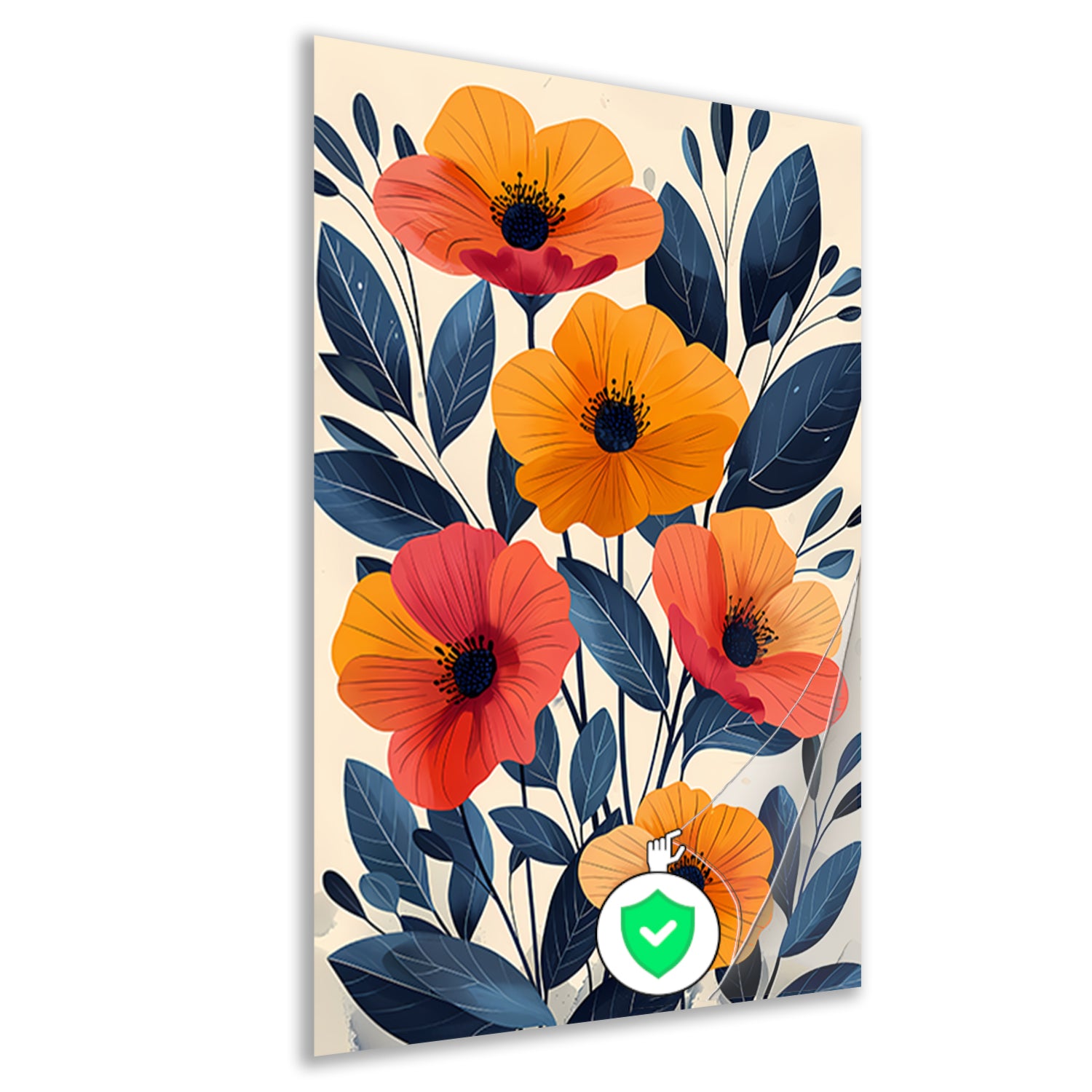 Levendige Illustratie van Kleurrijke Bloemen en Bladeren poster