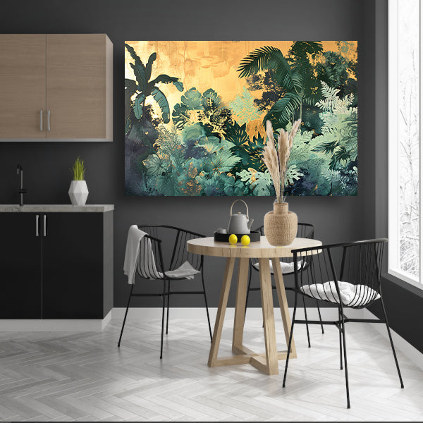 Levendige jungle in moderne kunststijl canvas met baklijst