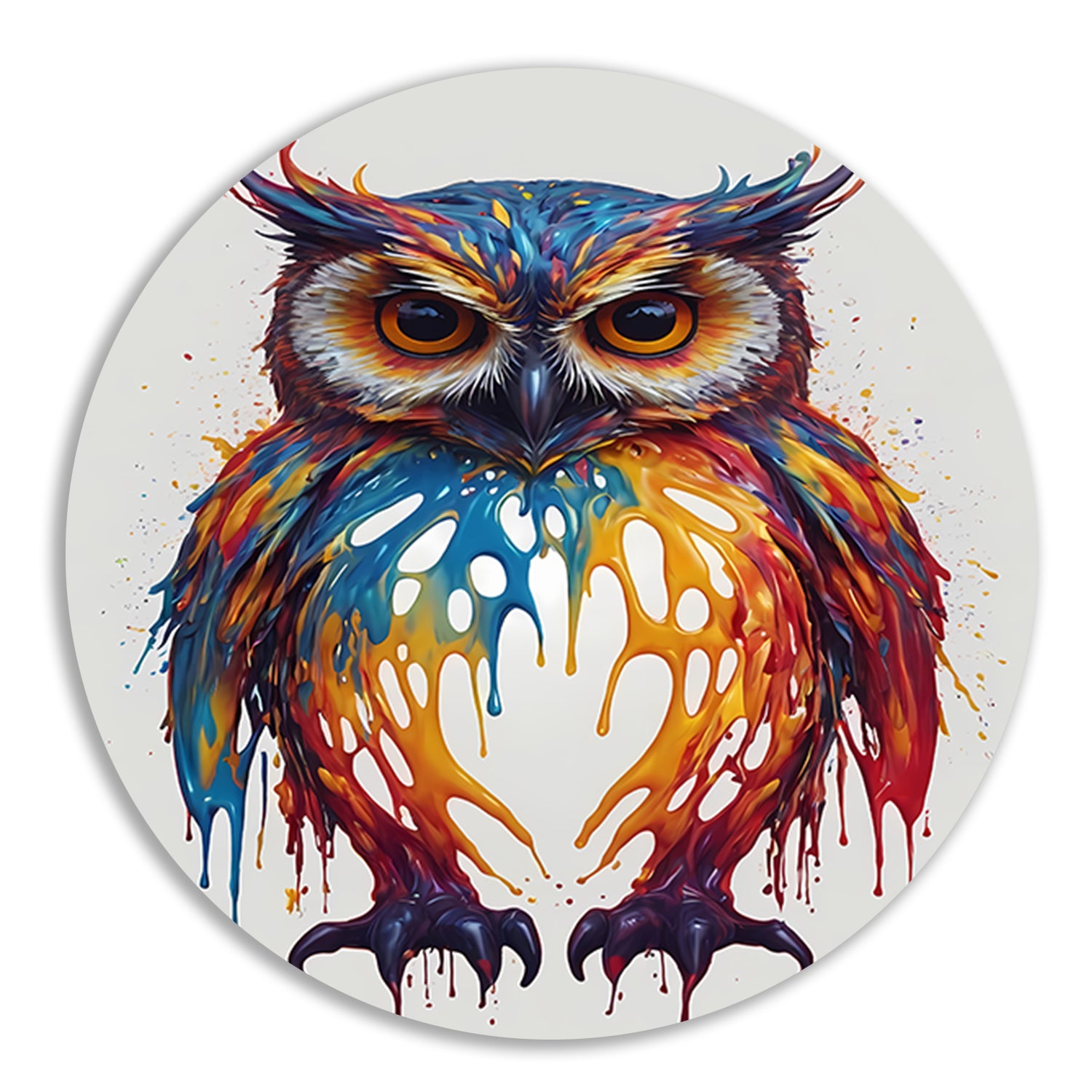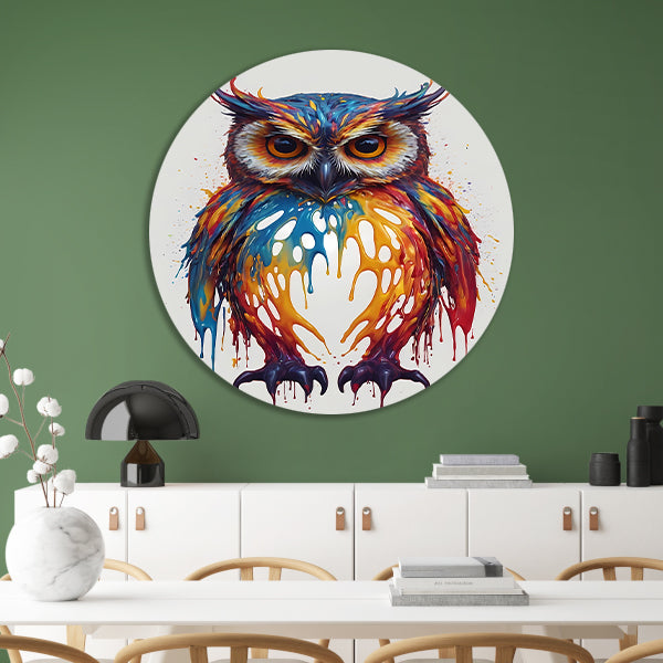 Levendige Kleurrijke Abstracte Uil Kunstwerk aluminium muurcirkel