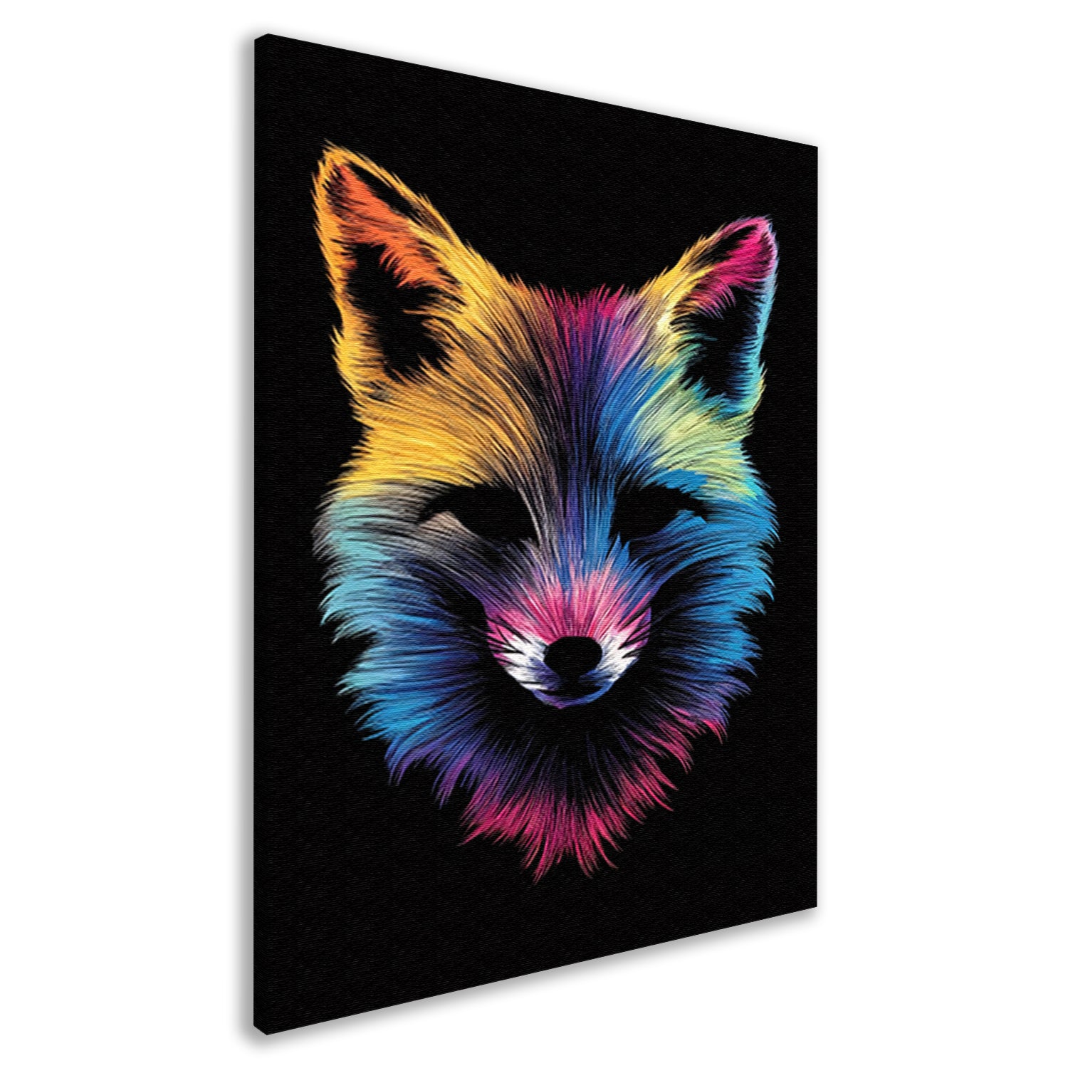 Levendige kleurrijke vos op zwarte achtergrond canvas