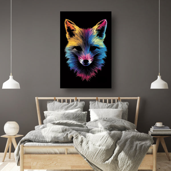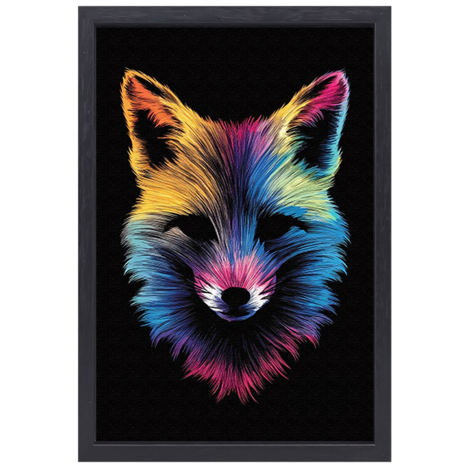 Levendige kleurrijke vos op zwarte achtergrond canvas met baklijst