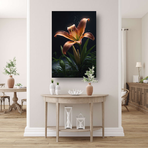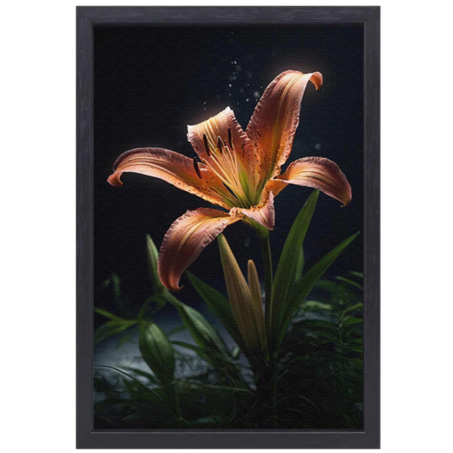 Levendige lelie met waterdruppels close-up canvas met baklijst
