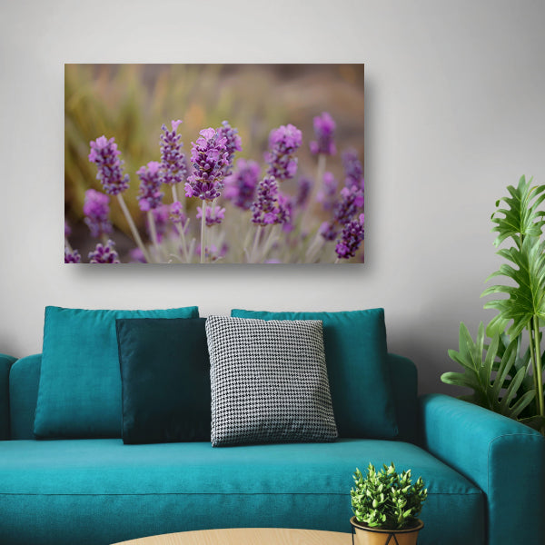 Levendige paarse lavendelbloemen in natuurlijke omgeving poster