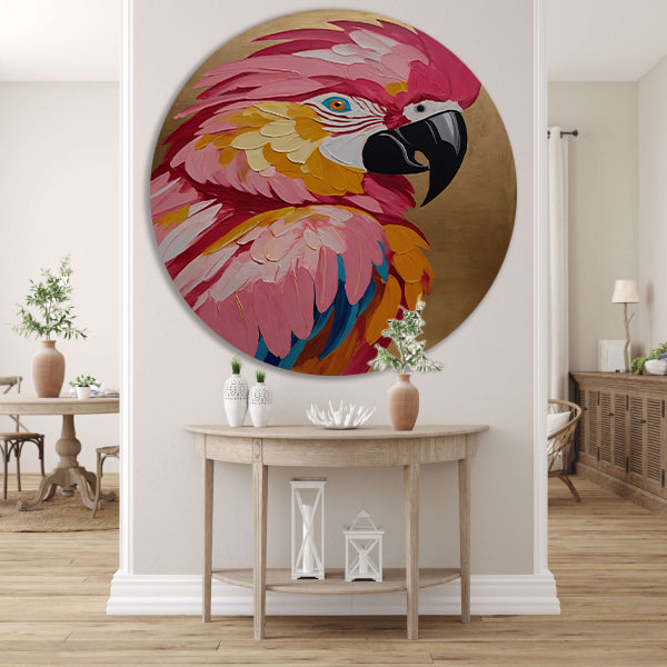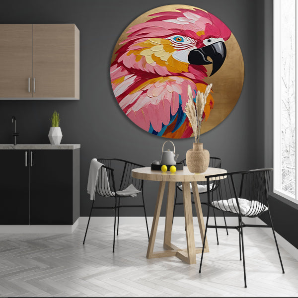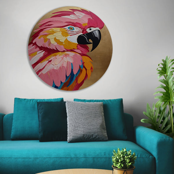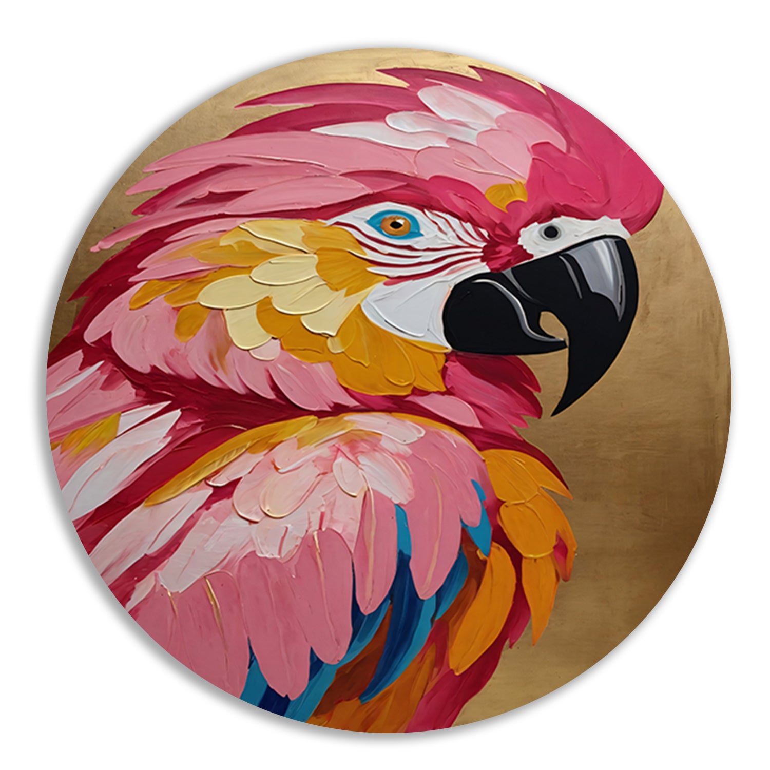 Levendige Papegaai met Gouden Textuur Achtergrond aluminium muurcirkel