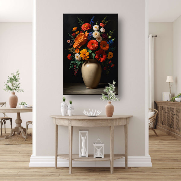 Levendige vaas met kleurrijke bloemenselectie poster