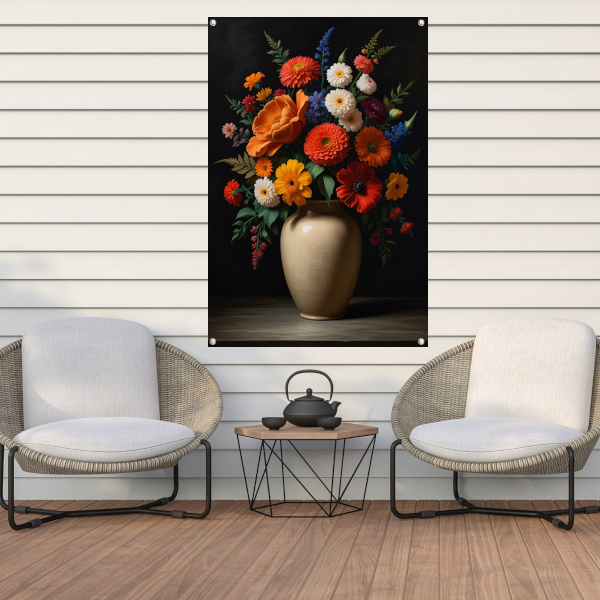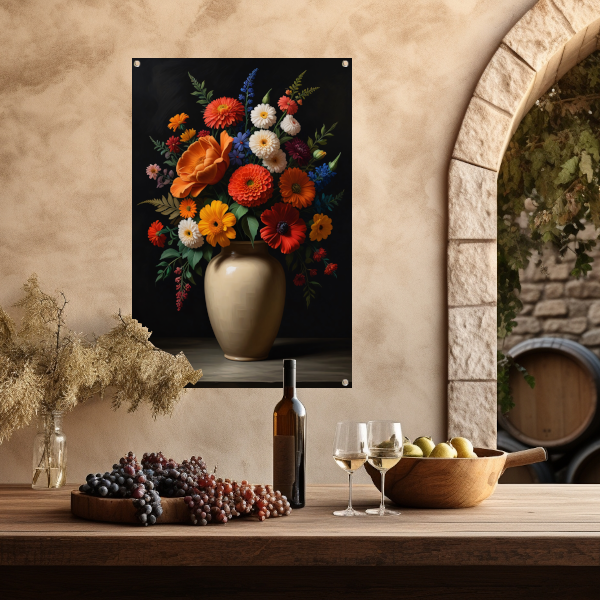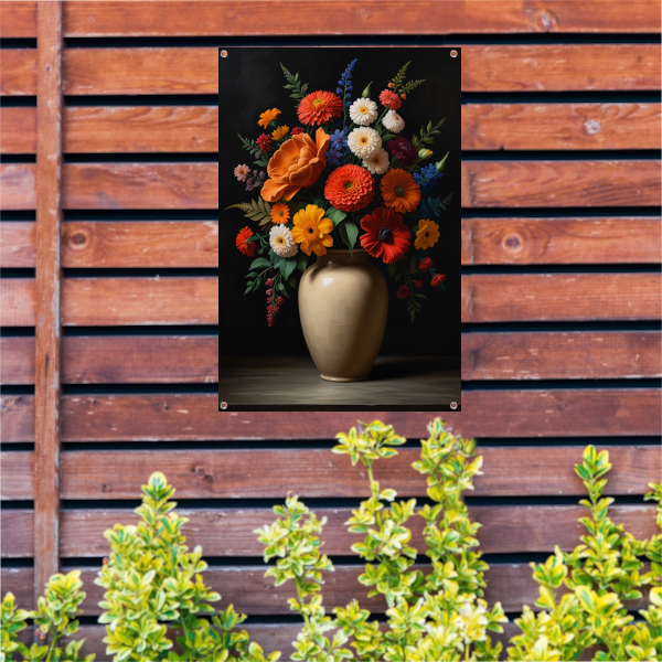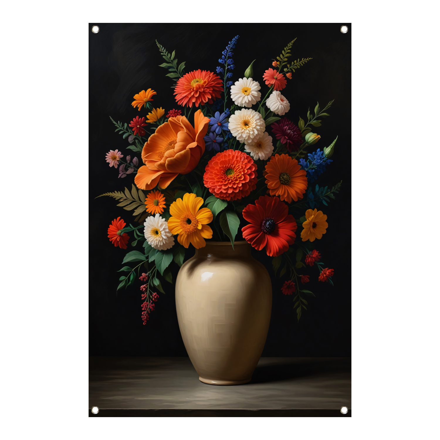Levendige vaas met kleurrijke bloemenselectie tuinposter