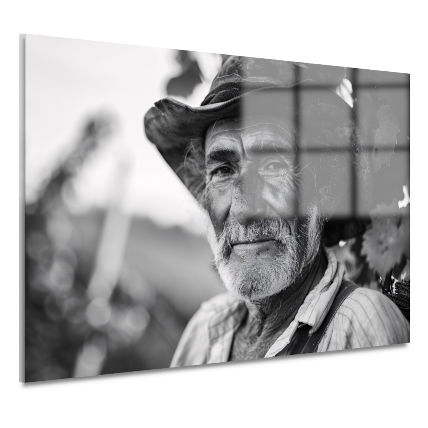 Voeg een vleugje kunst en elegantie toe aan je huis met deze prachtige levenstekening van een oude wijnboer op acrylglas. Bestel vandaag nog en geniet van jarenlang plezier van dit unieke kunstwerk.