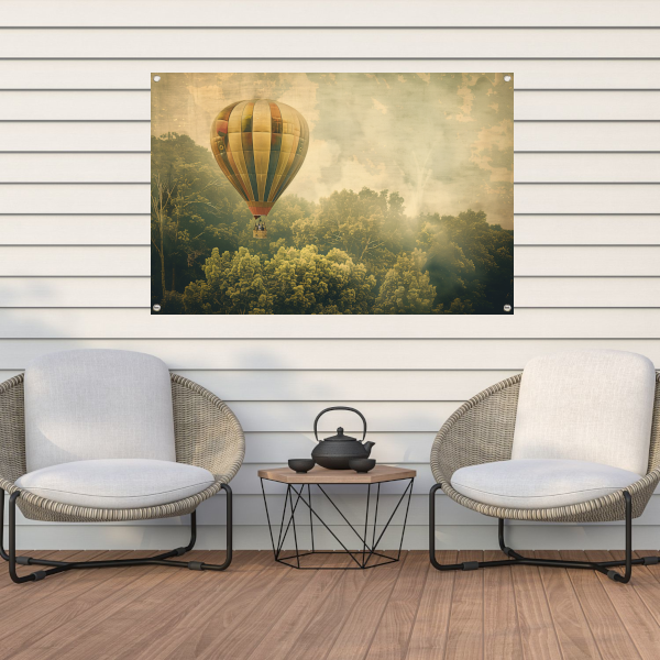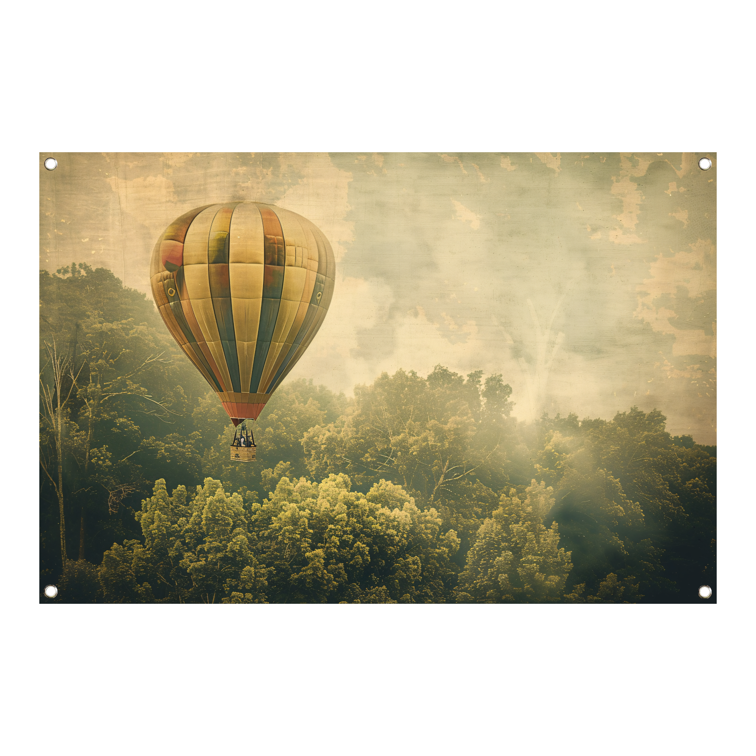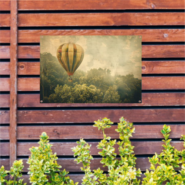 Voeg een vleugje avontuur en natuur toe aan je tuin met deze prachtige liggende tuinposter. De poster toont een luchtballon die boven een betoverend boslandschap zweeft, waardoor je tuin een magische sfeer krijgt. De kleuren van de poster zijn zacht en rustgevend, met groene tinten die het gevoel van een bos versterken. De stijl van de poster is modern en stijlvol, waardoor het een perfecte aanvulling is op elke tuin.
