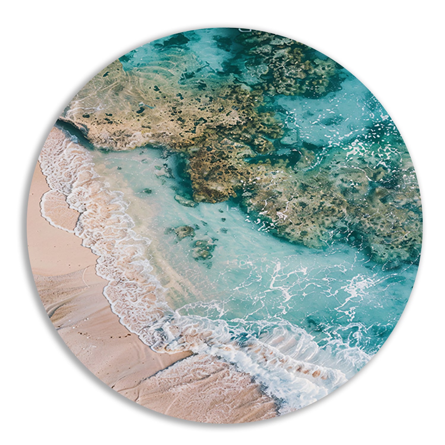 Luchtfoto van turquoise zee en strand aluminium muurcirkel