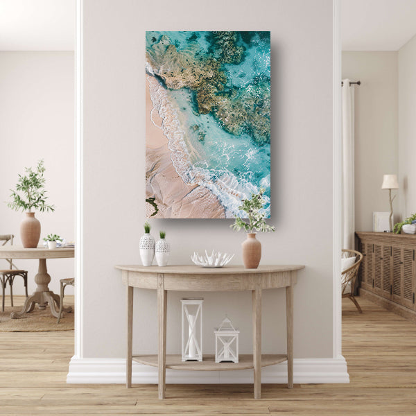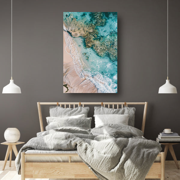 Luchtfoto van turquoise zee en strand canvas