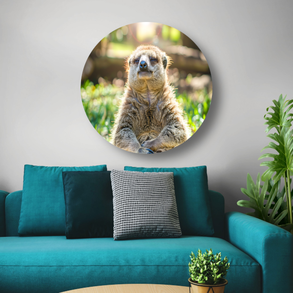 Luiaard genietend van zon in natuur aluminium muurcirkel
