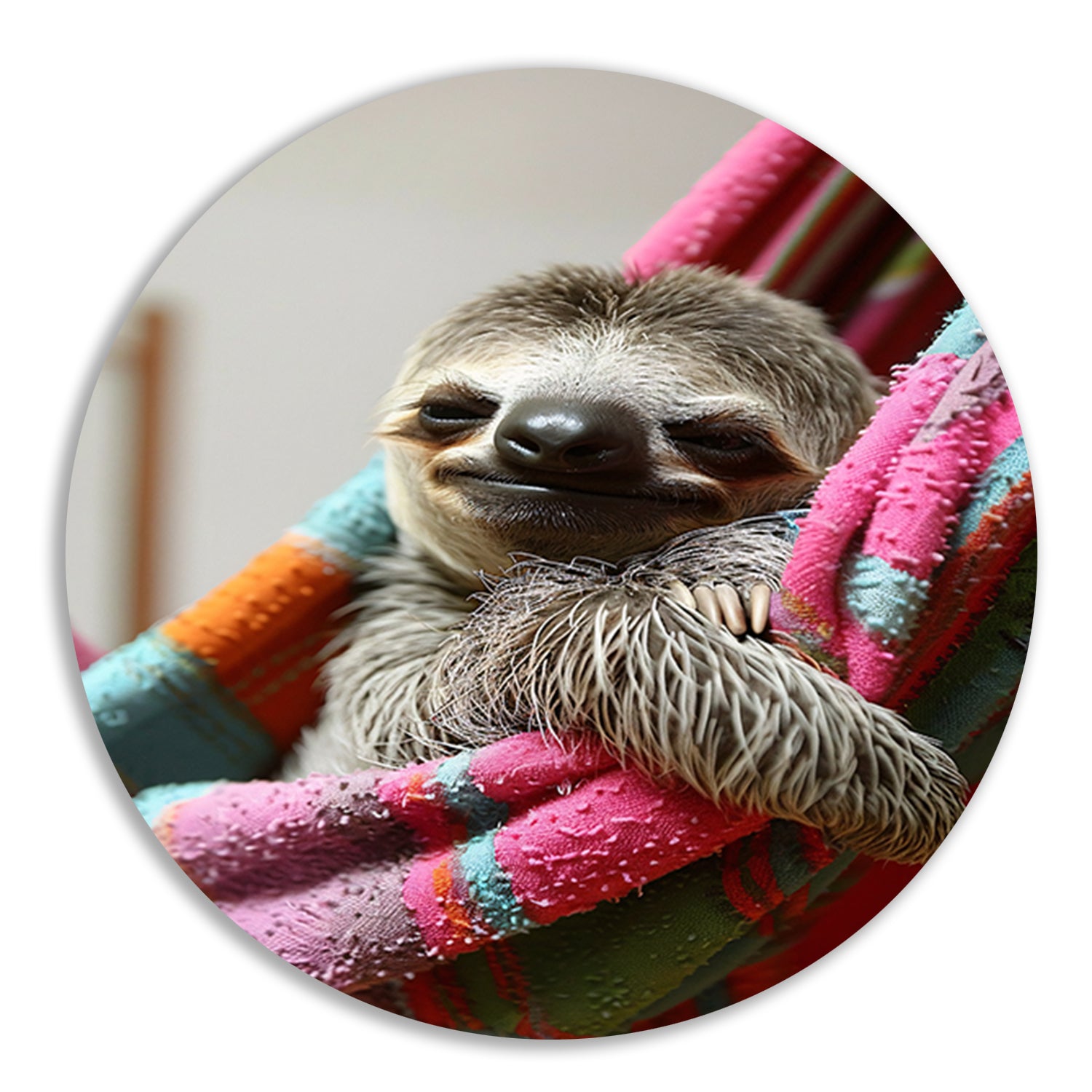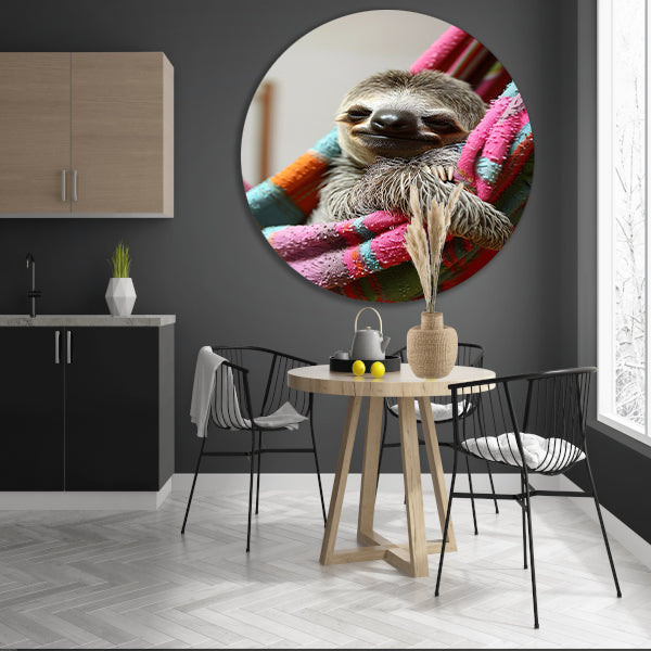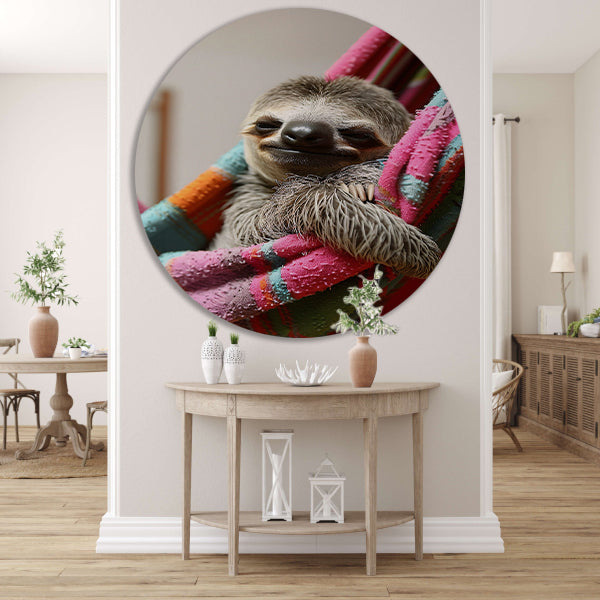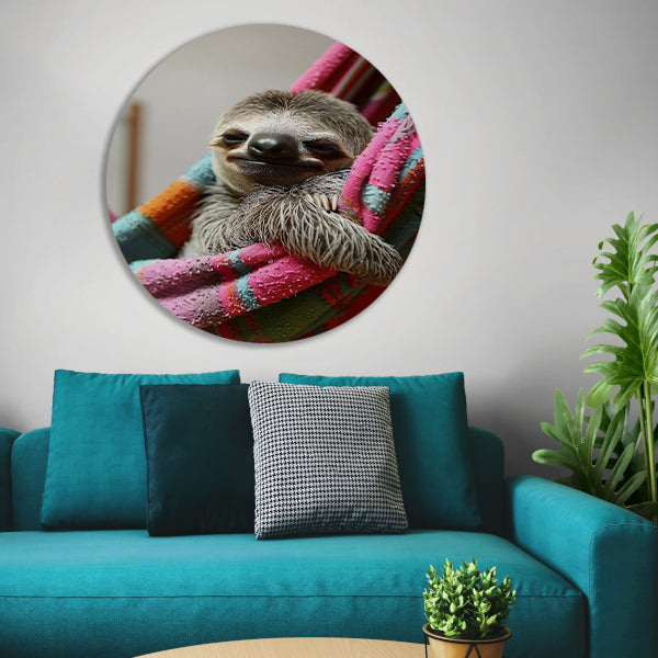 Luiaard in een Kleurrijk Hangmat aluminium muurcirkel