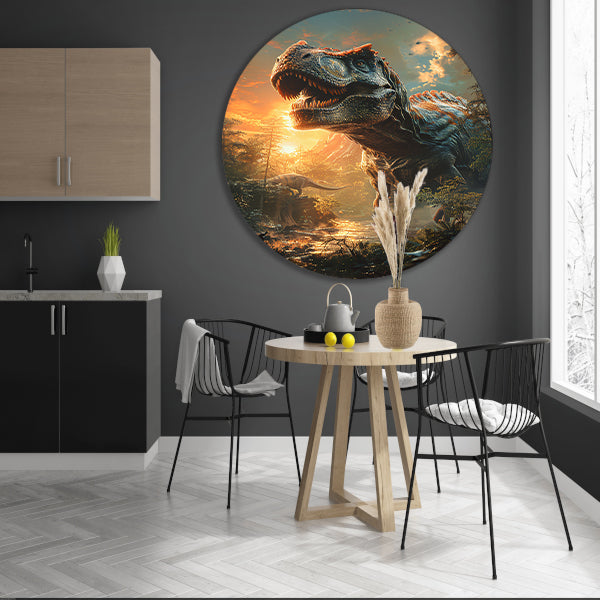 Machtige Tyrannosaurus Rex in zonsondergang aluminium muurcirkel