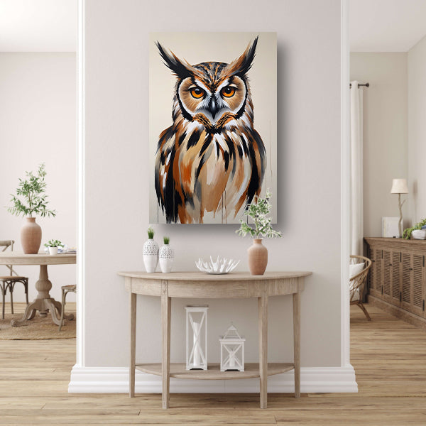 Breng de schoonheid van de natuur naar binnen met deze prachtige "Majestic Owl in Vivid Brushstrokes" acrylglas wanddecoratie. Een must-have voor liefhebbers van dieren en kunst!