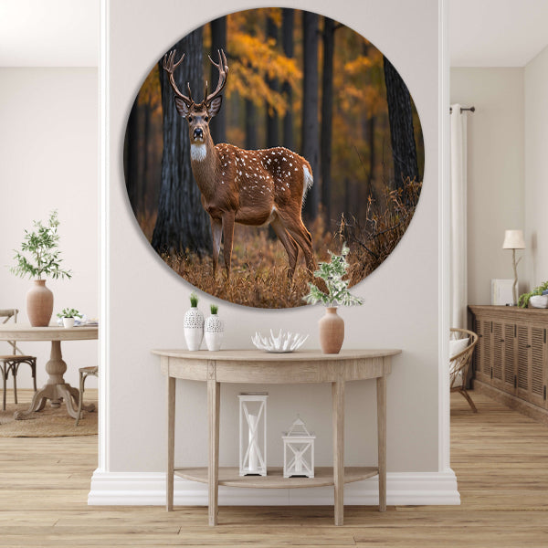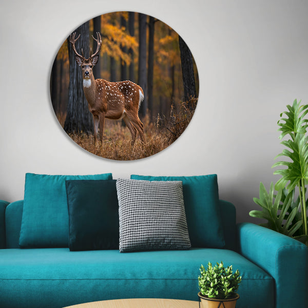 Majestueus hert in het herfstbos aluminium muurcirkel
