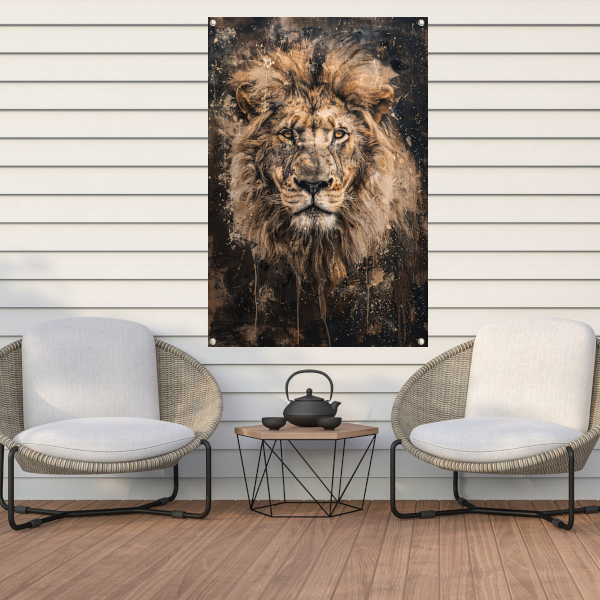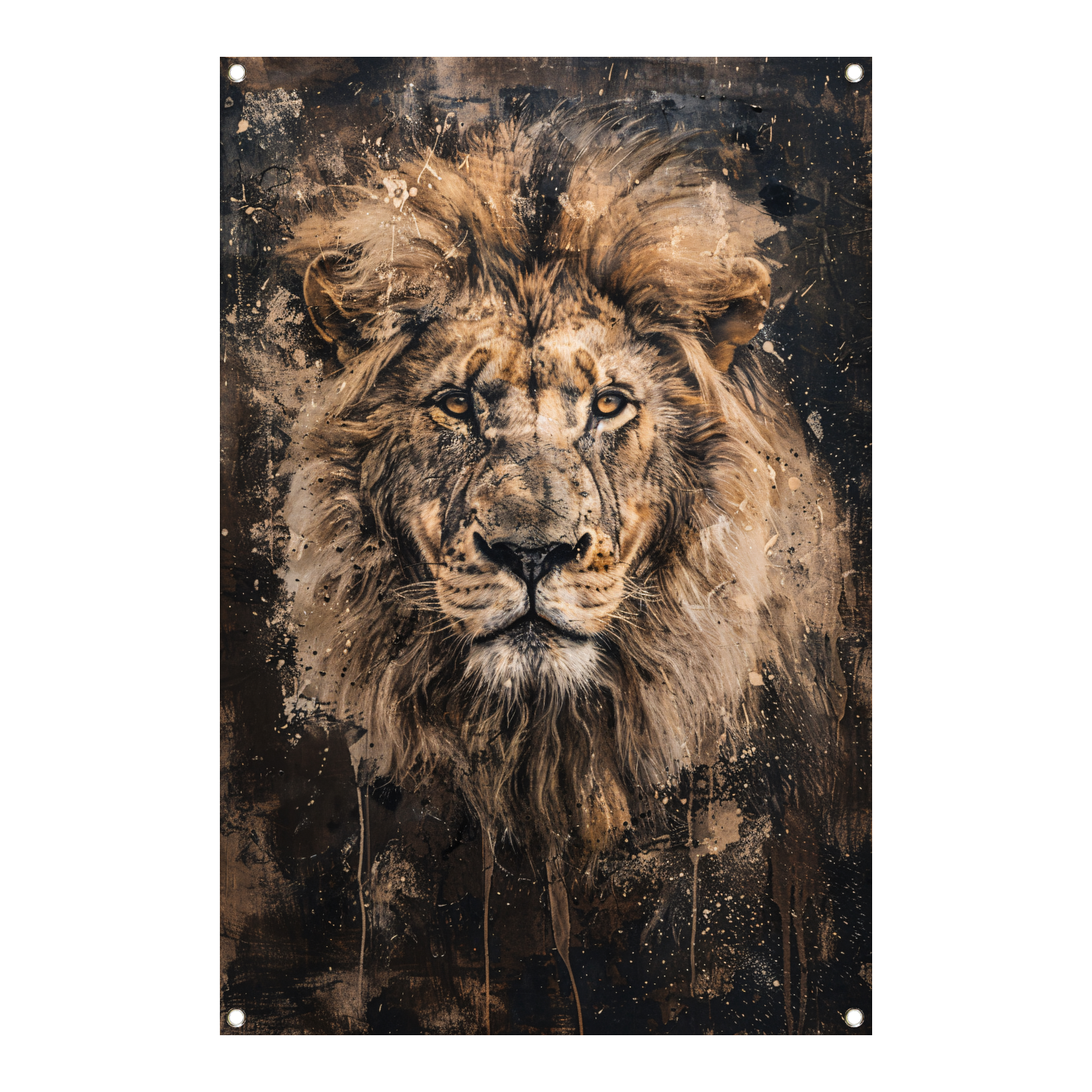 Majestueus Leeuw Portret in Sepia Stijl tuinposter