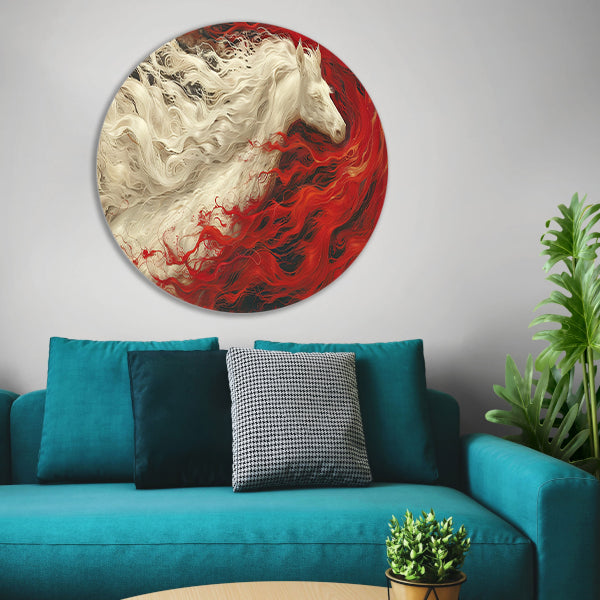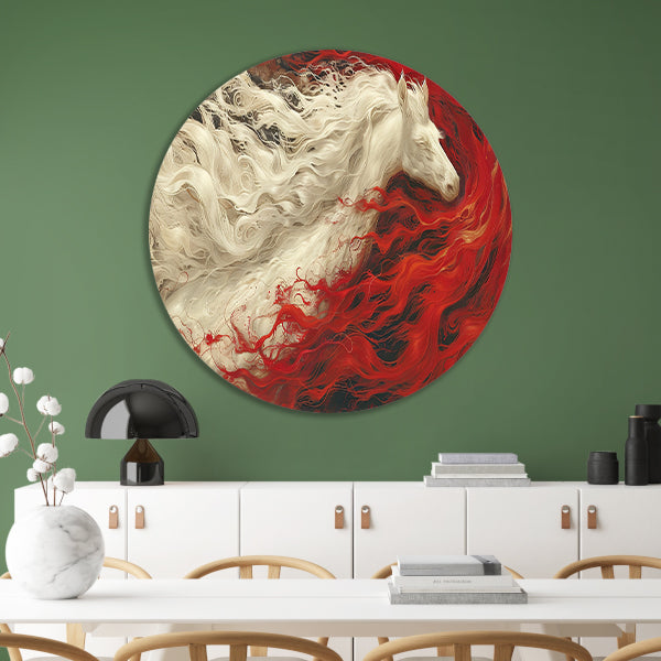 Majestueus Paard in Vuur en IJs aluminium muurcirkel
