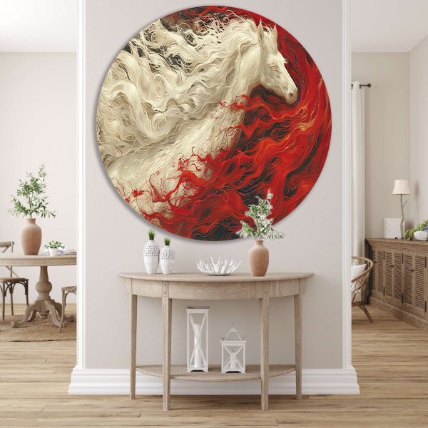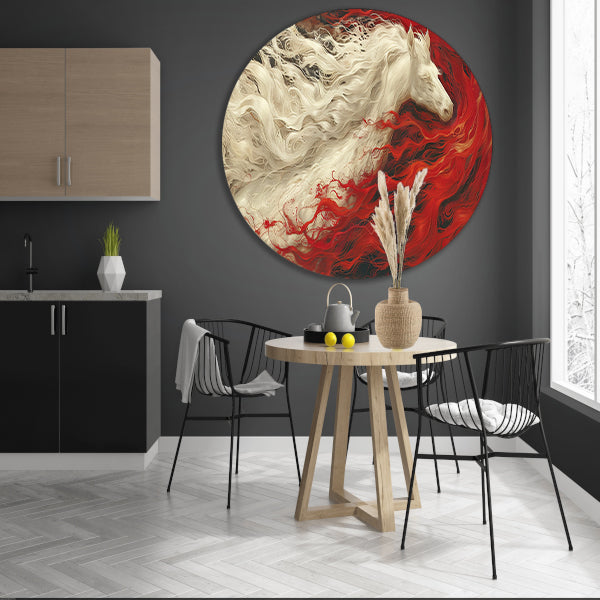 De muurcirkel is verkrijgbaar in diverse afmetingen, waardoor u altijd een passend formaat kunt vinden voor uw ruimte. Voeg een vleugje elegantie toe aan uw interieur met deze prachtige muurcirkel van een majestueus paard in vuur en ijs. Perfect voor liefhebbers van paarden en natuur. Bestel vandaag nog en geniet van de schoonheid van dit kunstwerk in uw eigen huis.