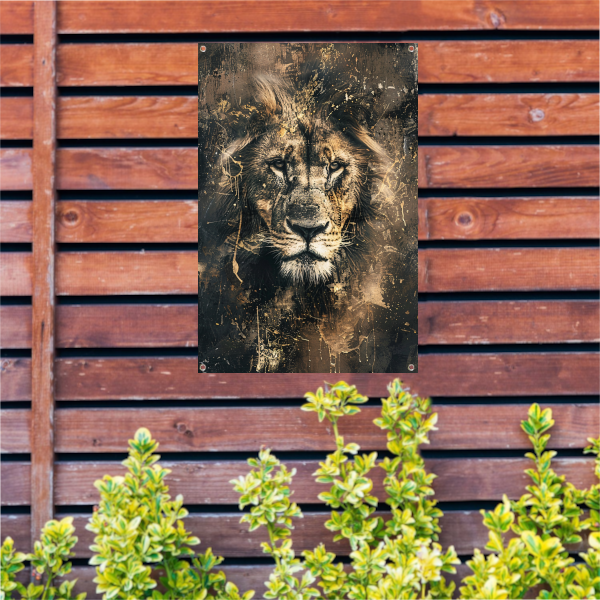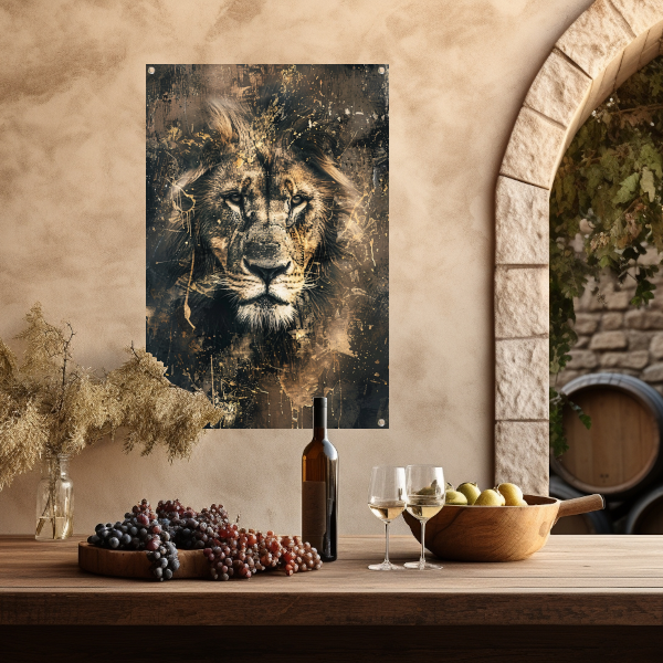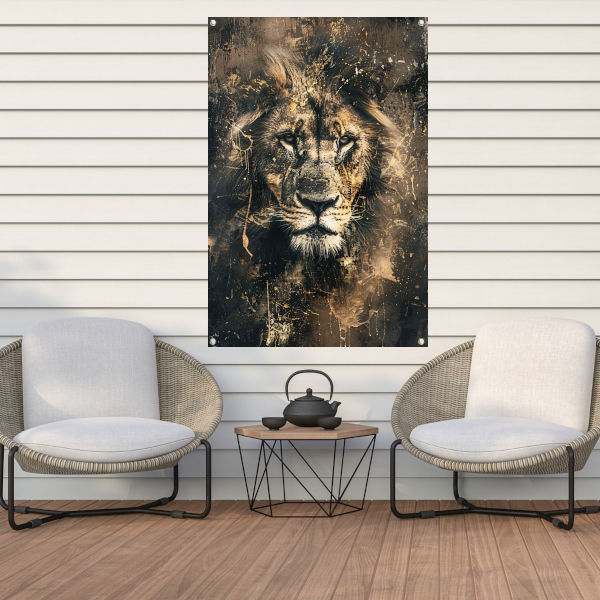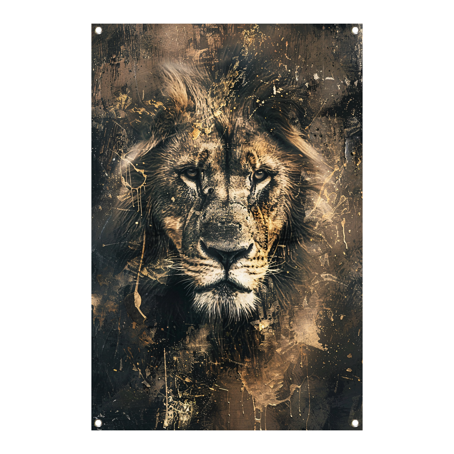 Majestueuze abstracte leeuwenkop met goudaccenten tuinposter
