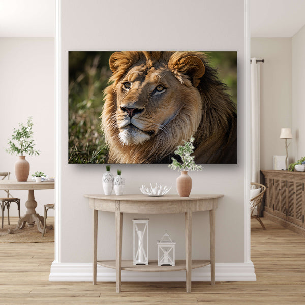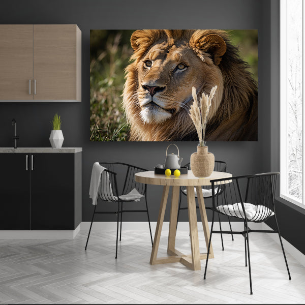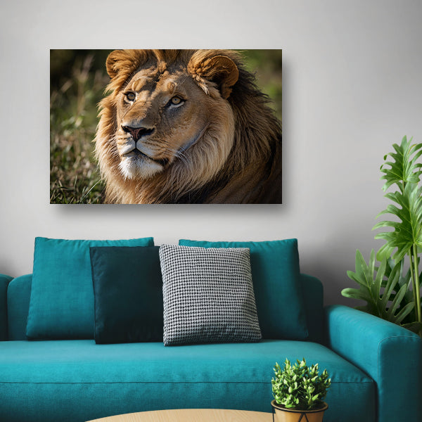 Majestueuze close-up van een leeuw in de natuur canvas met baklijst