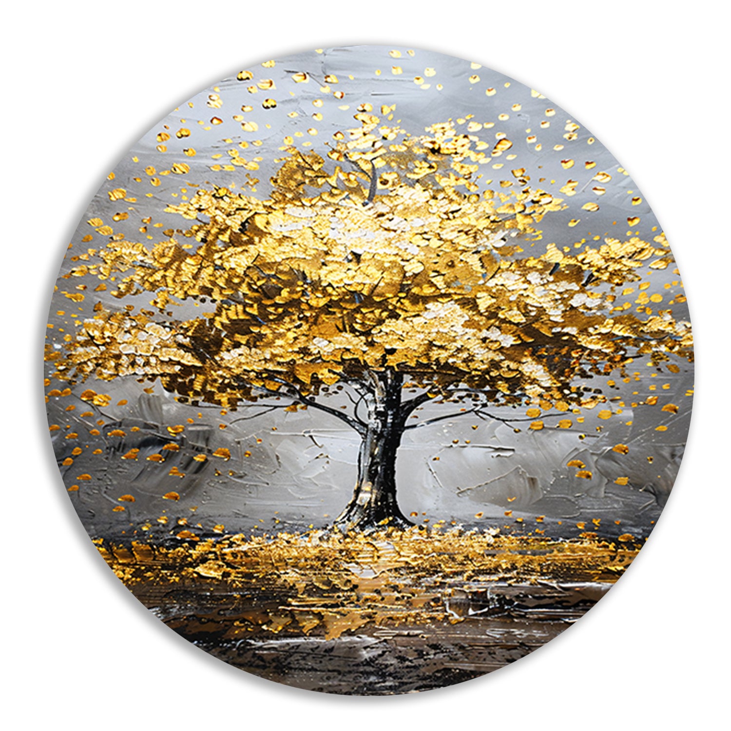 Majestueuze gouden boom in abstract landschap aluminium muurcirkel