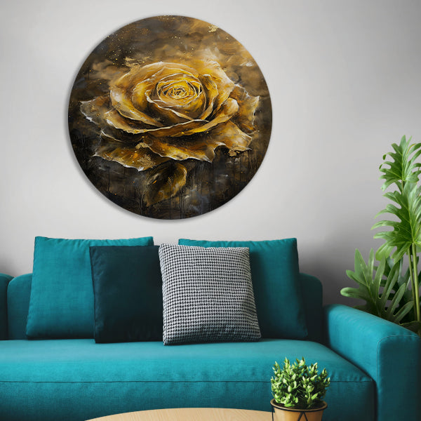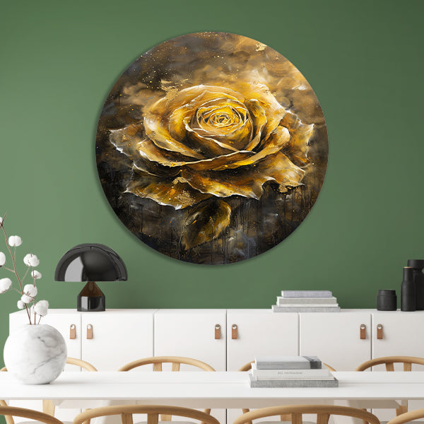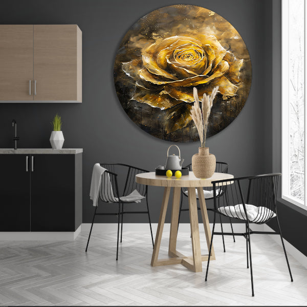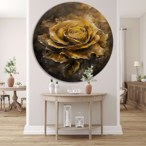 Majestueuze Gouden Roos op Donkere Abstracte Achtergrond forex muurcirkel