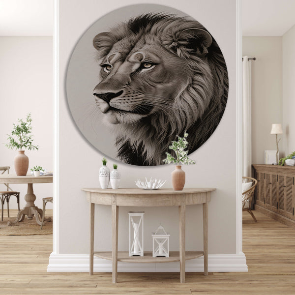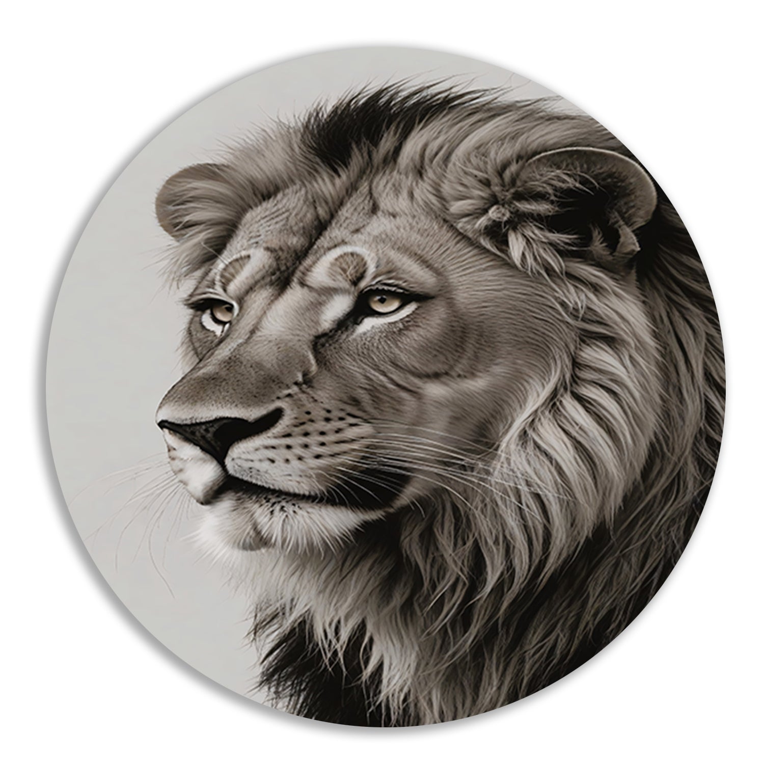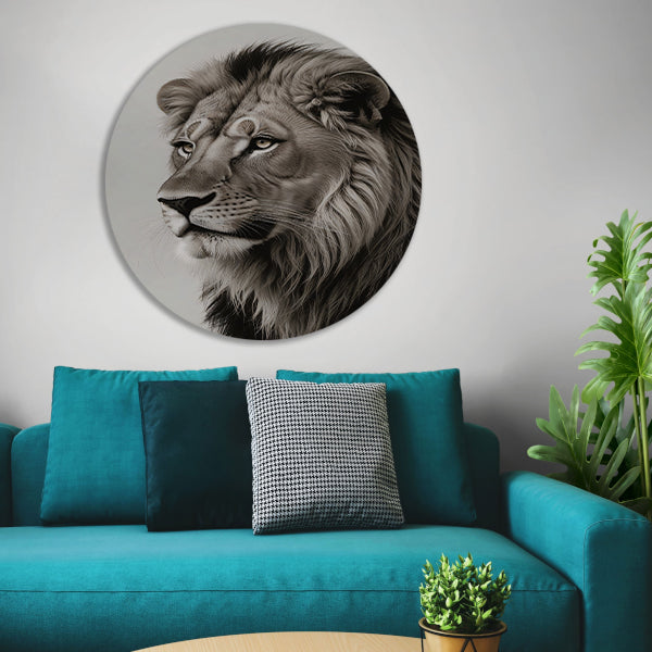 Majestueuze Leeuw in Monochrome Essentie aluminium muurcirkel