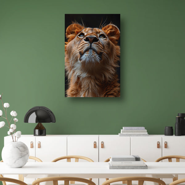 Majestueuze leeuw met intense blik omhoog acrylglas