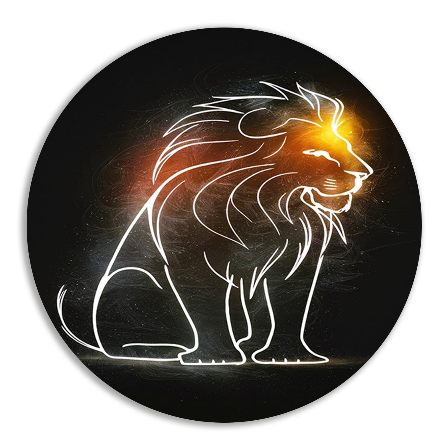 Majestueuze Leeuw Minimale Lijnkunst aluminium muurcirkel