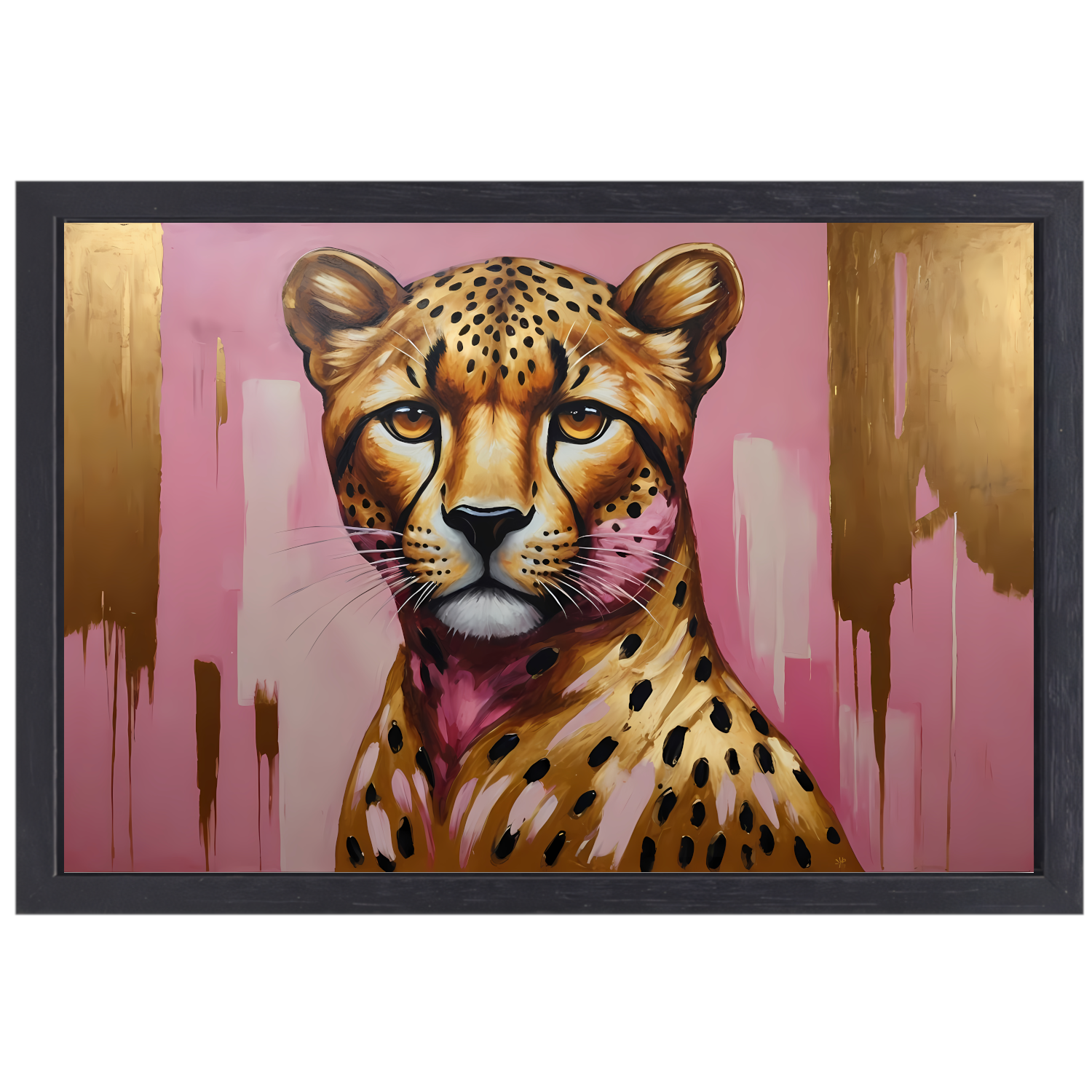 Majestueuze Luipaard in Goud en Roze canvas met baklijst